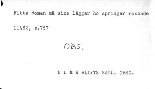 //// Fitta Boman mä sina läggar ho springer rasande //// 11482, s.757 //// U L M A BLIXTS SAI4L. OBSC. ////