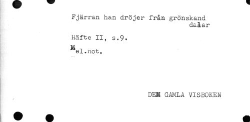 //// Fjärran han dröjer från grönskand //// daåar //// Häfte II, s.9. //// M //// el.not. //// * - ... //// DEM GAI4LA VISBOKEN ////