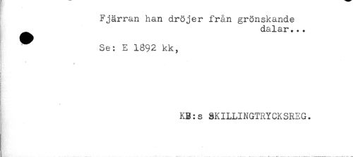 //// Fjärran han dröjer från grönskande //// dalar... //// Se: E 1892 kk, //// * //// KB:s SKILLINGTRYCKSREG. ////