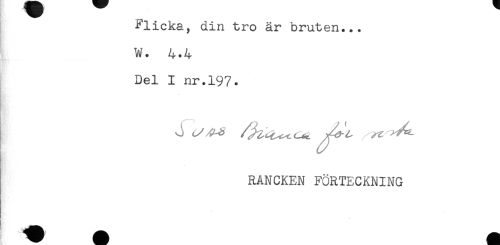 //// Flicka, din tro är bruten... //// W. 4.4 //// Del I nr.197. //// RANCKEN FÖRTECKNING ////