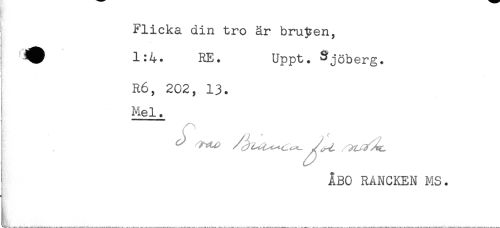 //// Flicka din tro är bruden, //// 1:4. RE. Uppt. Sjöberg. //// R6, 202, 13. //// Mel. //// I //// ^ ÅBO RANCKEN MS. ////