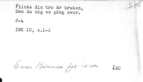 //// *licka din tro är bruten, //// Den du mig en gång svor. //// r , * //// 3-4 //// INE 10, s.1-2 //// C) ^o ^ ^ Ägo ////