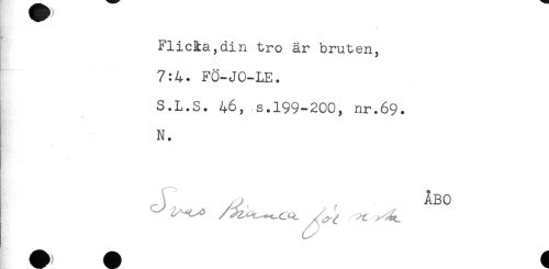 //// Flicka,din tro är bruten, //// 7:4. FÖ-JO-LE. //// . //// S.L.S. 46, s.199-200, nr.69. //// N. //// , //// J , ^ . ABO //// A * ////
