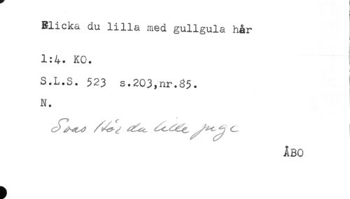 //// i //// < //// g //// Blicka du lilla med gullgula hår //// i //// i //// 1:4. KC. //// ; //// S.L.S. 523 s.203,nr.35. //// N. //// ÅBO ////