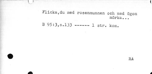 //// Flicka,du med rosenmunnen och med ögon //// mörka... //// B 95:3,s.133---1 str. kom. //// ^ RA //// < //// <* ////