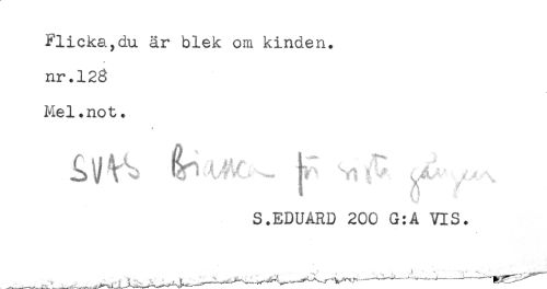 //// Flicka,du är blek om kinden, //// nr.128 //// Mel.not. //// ^ å ^ //// S.EDUARD 200 G:A VIS. ////