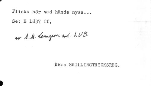 //// Flicka hör vad hände nyss... //// Se: E 1337 ff, //// KB:s SKILLINGTRYCKSREG. ////