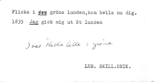 //// Flicka i gröna lunden,kom hvila nu dig. //// 1635 Jag gick mig ut åt lunden //// LUB. SKILL.UNIK. ////
