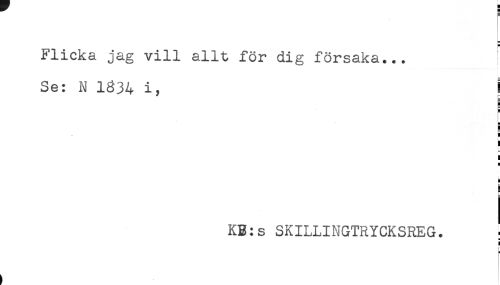 //// Flicka jag vill allt för dig försaka... //// Se: N 1334 i, ! //// i //// i //// ^ //// jg //// ! //// < //// H //// g //// KB:s SKILLINGTRYCKSREG. //// ! //// h //// * ////