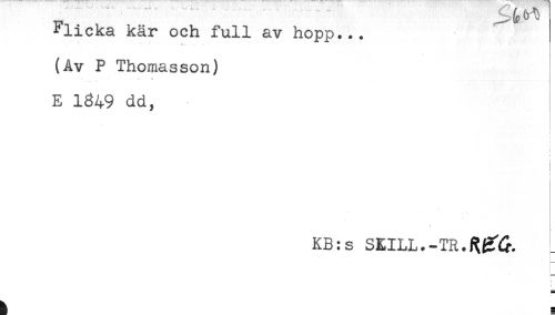 //// M) V V //// Flicka kär och full av hopp... //// *" * - - -. //// (Av P Thomasson) //// - ^ ^ . .f. * //// E 1849 dd, //// < //// ! //// < //// KB:s SEILL.-TR.^^. //// ! //// r //// : ////