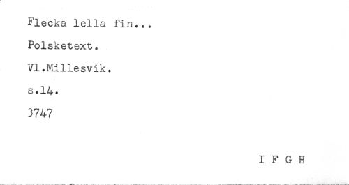 //// Flecka iella fin... //// Polsketext. //// Vl.Millesvik. //// s.14* //// 3747 //// I F G H ////