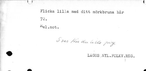 //// Flicka lilla med ditt mörkbruna hår //// 72. //// ^el.not. //// C-' /^j ^^ ^ ^ ^ //// ^ LÅ GU S N YL. FOLFLV. RE G. //// - ////