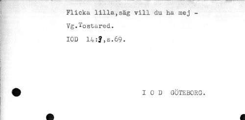 //// Flicka lilla,säg vill du ha mej - //// j Vg.Tostared. //// IOD 14:?,s.69* //// ^ IOD GÖTEBORG. ////