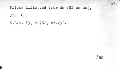 //// Flicka lilla,vad tror du väl om mej, //// 3:4. OR. //// S.L.S. 19, s.762, nr.292. //// * //// ÅBO ////