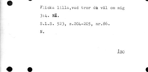 //// Flicka lilla,vad tror dm väl om mig //// 3:4. NR. //// S.L.S. 523, s.204-205, nr.66. //// N. //// ÅBO ////