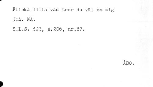 //// Flicka lilla vad tror du väl om mig //// 3:4. NÄ. //// S.L.S. 523, s.206, nr.37. //// ÅBO. ////