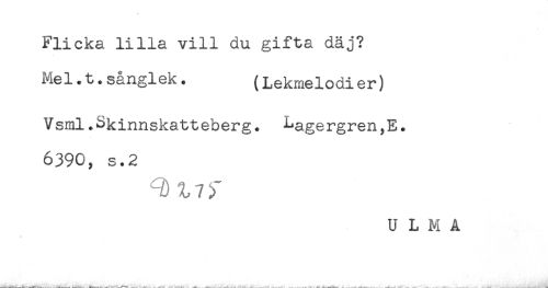 //// Flicka lilla vill du gifta däj? //// Mel.t.sånglek. (Lekmelodier) //// Vsml.Skinnskatteberg. Lagergren,E. //// 6390, s.2 //// U L M A ////