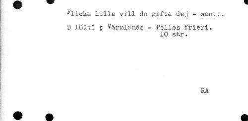 //// ^licka lilla vill du gifta dej - san... //// B 105:5 p Värmlands - Pelles frieri. //// 10 str. //// RÅ ////