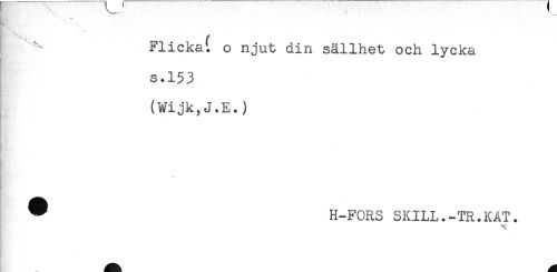 //// B)' '' //// i Flickat o njut din sällhet och lycka //// s.153 //// (Wijk,J.E.) //// - //// * //// ^ H-FORS SKILL.-TR.KAT. //// ! . X //// E. - ^ ////