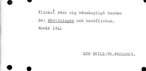 //// Flickat räck mig vänskapligt handen //// Se: Drottningen och bondflickan. //// Noråk 1841 //// LUB SKILL:TR.PROSAREG. ////
