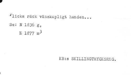 //// ^licka räck vänskapligt handen... //// Se: N 1836 g, //// E 1877 m3 //// KB:s SKILLINGTRYCKSREG. ////