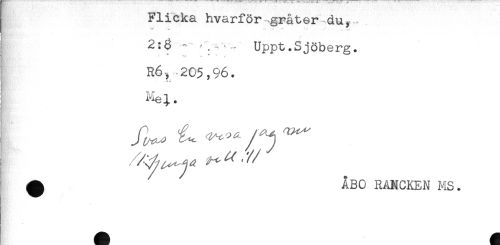 //// Flicka hvarför .gråter du, //// "' **' "" "" .....* . ^ //// " Uppt.Sjöberg. //// B - ^. ' ** //// 205,96. //// ^ ÅBO RANCKEN MS. ////