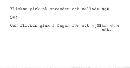 //// Flickan gick på stranden och vallade höt //// Se: //// Och flickan gick i ängen för att mjölka sina //// nöt. ////