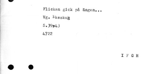 //// Flickan gick på ängen... //// Vg. Lkeskoa //// S.39^43 //// 4722 //// I F G H //// L ////