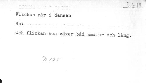 //// 7 - --- - - - - " - - . . [ //// * *' * ? . - < //// ^ t . . . - //// Flickan går i dansen ! //// Och flickan hon växer båd småler och lång. //// < //// - ////
