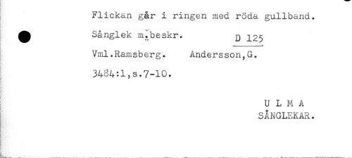 //// Flickan går i ringen med röda gullband. //// ^ Sånglek m.beskr. Q //// irn«.. t! I I //// Vml.Ramsberg. Andersson,G. //// [ //// U L M A //// SÅNGLEKAR. //// RL^L ^ ^ . . . , - . , ^ ^^ ___ ^^^ . .„. , ^^^ .. . ..... ^ „ .-i,,- ////