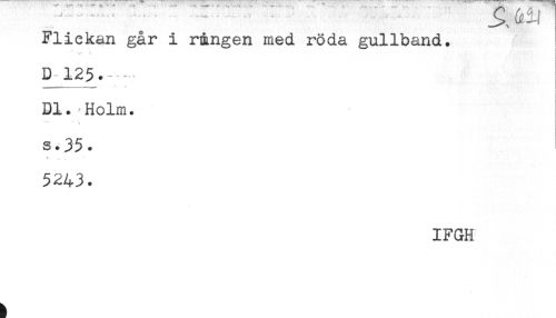 //// J>-, i //// Flickan går i r&ngen med röda gullband. //// D 125. //// Dl. Holm. //// s.35. //// t //// 5243. //// IFGH ////