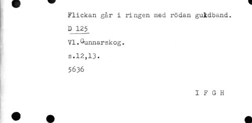 //// Flickan går i ringen med rödan guMband. //// I ^ //// VI.Gunnarskog. //// s.12,13. //// 5636 //// I F G H //// i) m ^ ^ ////