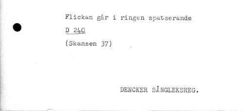 //// H& -,' //// Flickan går i ringen spatserande //// ^ D 2^0 //// (Skansen 37) //// DENCKER SANGLEKSREG. //// HL.....-___.... ....-..... ////