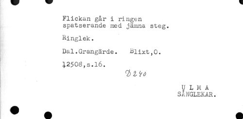 //// Flickan går i ringen //// spatserande med jämna steg. //// Ringlek. //// Dal.Grangärde. Blixt,O. //// 12506,s.16. //// * ////