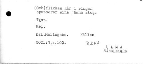 //// (Och)flickan går i ringen //// ^ spatserar sina jämna steg. //// T&xt. //// Mel. //// Dal.Malingsbo. Hällen //// ! 2001:3, s. 102.. ////