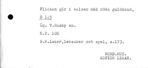 //// Flickan går i valsen mäd röda guldband, //// Ög. V.Husby sn. //// B.U. 100 //// : N.M.Lekar,leksaker och spel, s.l?3. //// t //// NORD.MUS. //// KOPIOR LEKAR. //// L . ...... ////