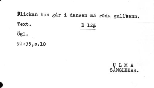 //// Plickan hon går i dansen mä röda gullbann. //// Text. D 12& //// Ögl. //// 91:35,s.10 ////