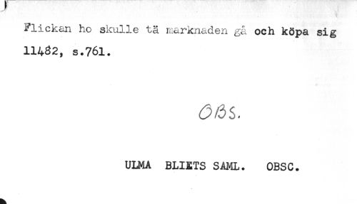//// Flickan ho skulle tä marknaden gå och köpa sig //// 11482, s.76l. //// (Ms, //// ULMA BLIETS SAML. OBSC. ////