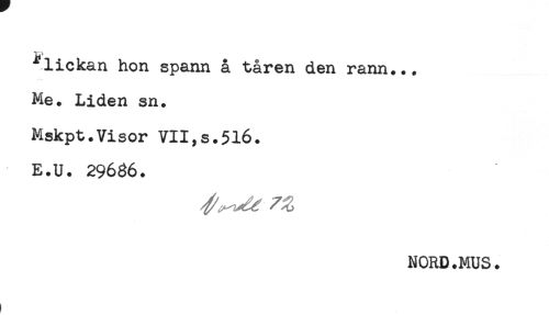 //// *lickan hon spann å tåren den rann... //// Me. Liden sn. //// Mskpt.Visor VII,s.5l6. //// E.U. 29636. ////