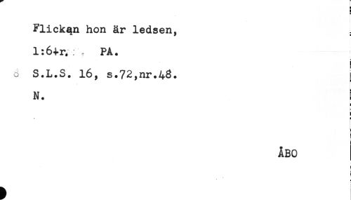 //// Flickqn hon är ledsen, //// l:6-t-r. . . PA. //// i //// 0 S.L.S. 16, s.72,nr.43. i //// N. i //// i //// i //// i //// < //// < ////