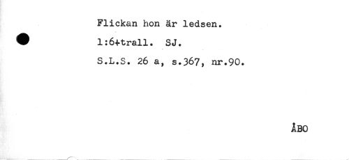 //// Flickan hon är ledsen. //// # 1:6^-trall. SJ. //// S.L.S. 26 a, s.367, nr.90. ////