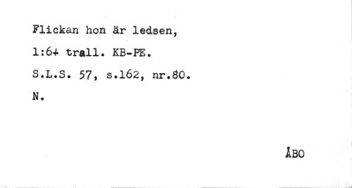 //// Flickan hon är ledsen, //// 1:6^ trall. KB-PE. //// S.L.S. 57, s.162, nr.60. //// N. //// ÅBO //// _._____. _____J ////