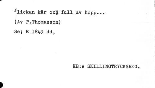 //// * //// e //// *lickan kär oc^ full av hopp... //// (Av P.Thomasson) //// Se; E 1849 dd, //// * //// I //// KB:s SKILLINGTRYCKSREG. //// //// /