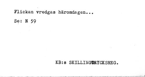 //// Flickan vredgas häromdagen... //// Se: N 59 //// * //// KB:s SKILLINGERYCKSREG. ////