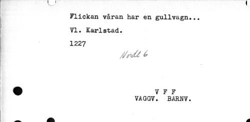 //// t .f' . .. //// . Flickan våran har en gullvagn... //// VI. Karlstad. //// - //// 1227 //// y //// ! //// j //// { //// # V F F //// VAGGV. BARNV. ////
