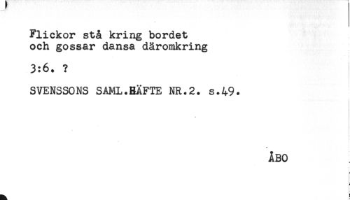 //// Flickor stå kring bordet //// och gossar dansa däromkring //// 3:6. ? //// SVENSSONS SAML. HÄFTE NR.2. s.49* //// t //// * //// w* //// ÅBO ////
