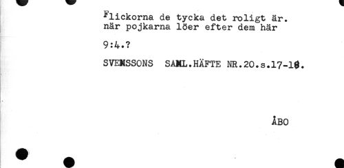 //// Flickorna de tycka det roligt är. //// när pojkarna löer efter dem här //// 9:4.? //// SVENSSONS SAML.HÄFTE NR.20.s.17-1$. //// * //// ÅBO ////
