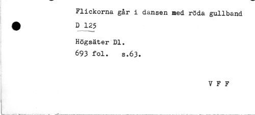 //// Flickorna går i dansen med röda gullband //// ^ D 125 //// Högsäter Dl. //// 693 fol. s.63. //// i //// S //// V F F ////