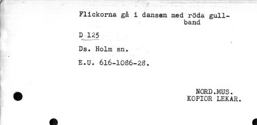 //// , . - - - , //// Flickorna gå i dansen med röda gull- //// band //// D 125 //// Ds. Holm sn. //// t* # * .. //// 4 //// E.U. 616-1086-28. //// ^ NORD.MUS. //// W KOPIOR LEKAR. ////