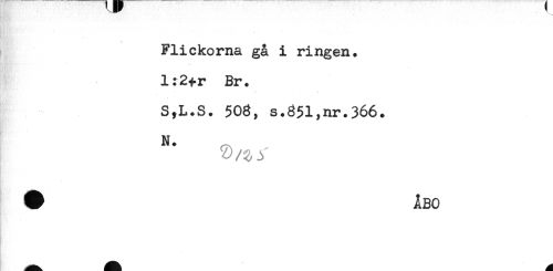 //// Flickorna gå i ringen. //// l:2^r Br. //// * < //// S,L.S. 508, s.851,nr.366. //// N. ////